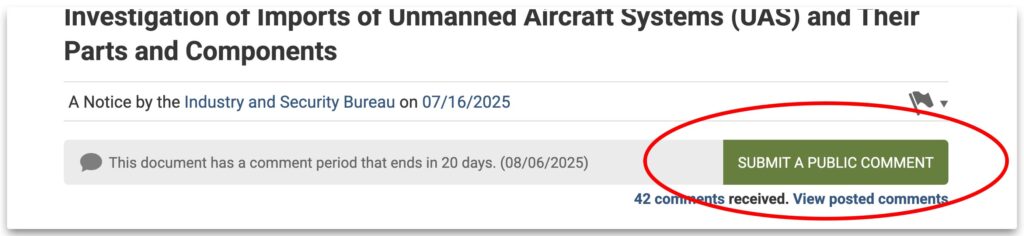 There is also some very noticeably absent words in BIS-2025-0059-0001 , the official docket number of this request. Nowhere in this request is China mentioned. Nor is “country of origin”, or the usual suspects, DJI & Autel mentioned. But I’d bet dollar to donuts, that’s exactly who the BIS had in mind when they put this out.